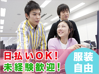 来社不要!簡単WEB登録でスピード採用◎ ◇お給料は前払い(規定有)月払いから選択してGET ◇私服で気楽に勤務OK♪ ◇綺麗なビル内でのお仕事 └休憩室など完備 まずはお気軽にご応募下さい☆彡